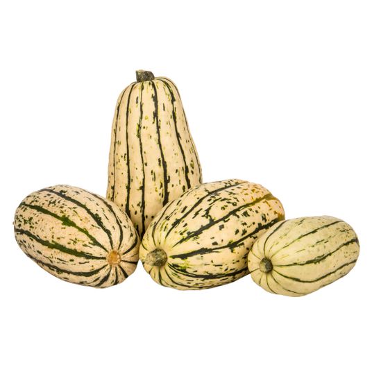 Delicata squash is favored in the kitchen as its thin skin is not only an ease to slice but is also edible when cooked so need not be peeled prior to consumption. Delicata squash hold their shape well through cooking, making them an excellent choice for stuffing with grains, meats or cheese, and baking. When cooked, the Delicata has a consistency similar to that of a sweet potato—creamy and soft—although the flavoring is a bit earthier. Delicata squash can be sliced into rings or cubes and braised, stewed, sautéed or roasted. For a decorative effect, take advantage of this squash's ridges by slicing width-wise to create scalloped circles or halves.