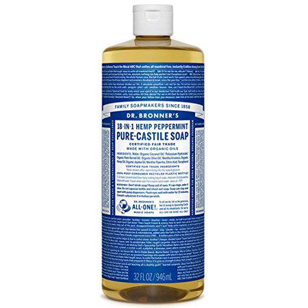Dr. Bronner's Pure-Castile Liquid Soap in Peppermint scent is a versatile and effective soap that is perfect for your body and the planet. Made with organic and certified fair-trade ingredients, this soap is concentrated and biodegradable. It is scented with organic peppermint oil, which cools the skin, clears sinuses, and sharpens the mind. The soap produces a moisturizing lather that won't dry out your face, body, or hair. Dr. Bronner's Pure-Castile Liquid Soap is packaged in a 100% post-consumer recycled bottle and is cruelty-free.