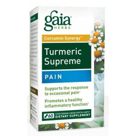Gaia Herbs Turmeric Supreme Pain is a high-quality pain relief supplement that combines turmeric with other herbal extracts to support a healthy pain response and help relieve occasional aches and pains. This formula includes ingredients like feverfew, devil's claw, and ginger, which have each been studied for their role in supporting the body's reaction to occasional pain. The addition of black pepper extract enhances the absorption and bioavailability of curcumins, the active compounds in turmeric. Gaia Herbs is deeply committed to the purity, integrity, and potency of each product, using only organic methods to cultivate their plants. With their herb traceability program, MeetYourHerbs, Gaia Herbs ensures transparency and allows consumers to learn more about the herbs used in their products.
