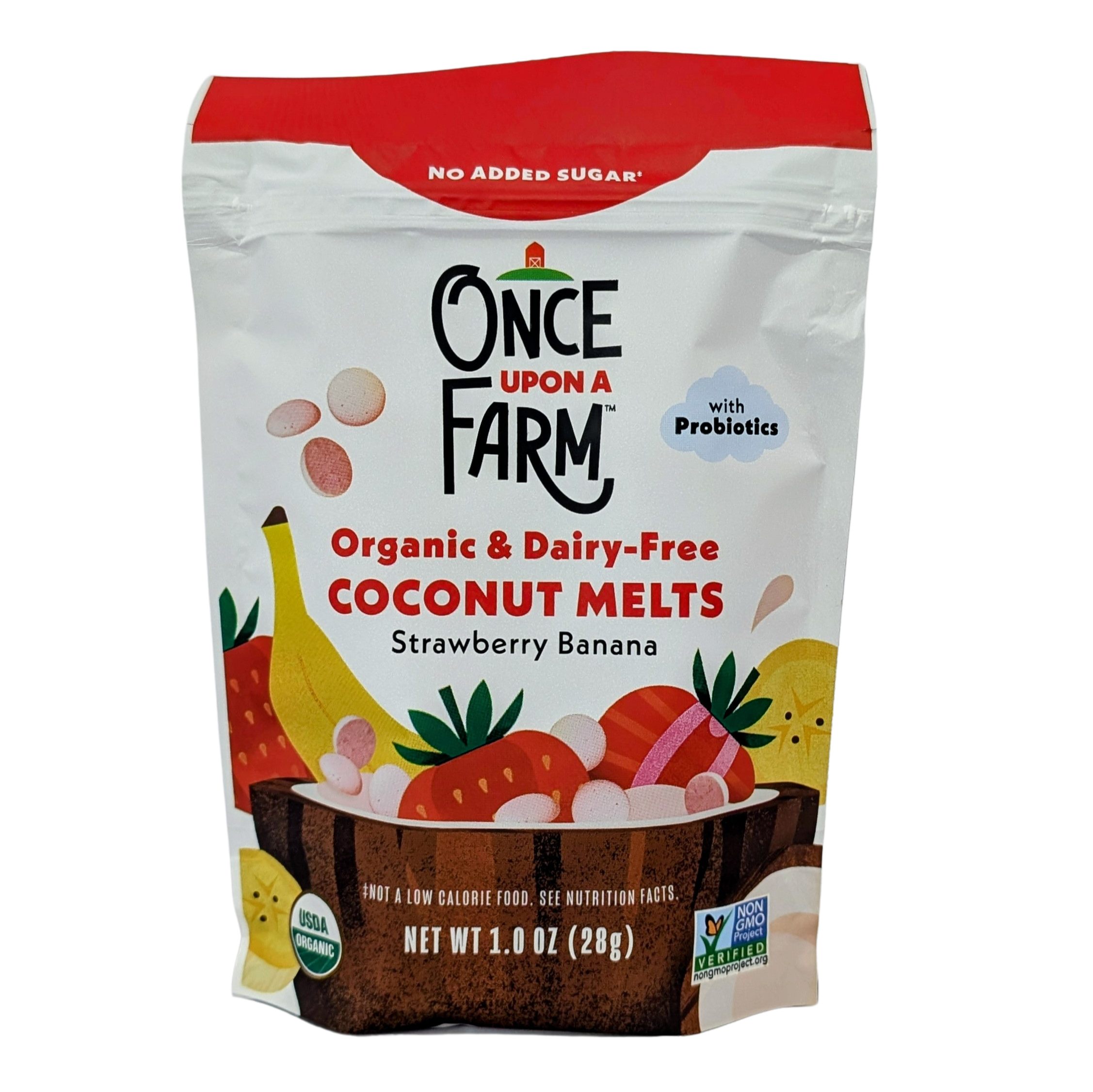 Once Upon a Farm Coconut Melts Strawberry Banana Baby Snacks are a magical snacking option for little ones. Made with real fruit, silky coconut milk, and added probiotics, these dairy-free melts provide a delicious and nutritious treat. The melt-in-the-mouth experience encourages eating independence and introduces new textures, making snack time enjoyable and mess-free. Perfect for on-the-go or at home, these Coconut Melts are a tasty and convenient option for parents looking for wholesome snacks for their babies.