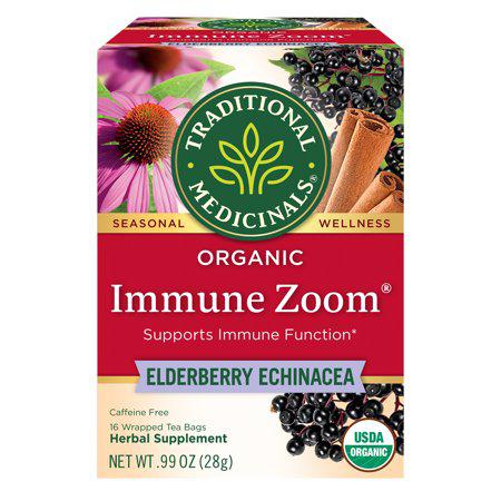 Traditional Medicinals Immune Zoom Elderberry Echinacea Tea Bags are specially formulated to support immune function. This tea combines the power of echinacea, licorice root, elderflower, and elderberry to give your immune system a boost when you need it most. With sweet and tart elderberry notes mixed with warming cinnamon, this tea is not only comforting but also delicious. Each box contains 16 tea bags, making it convenient for everyday use. Incorporate Traditional Medicinals Immune Zoom Elderberry Echinacea Tea into your daily routine to stay healthy and prepared for whatever comes your way.