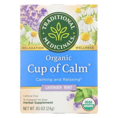 Traditional Medicinals Cup of Calm Organic Tea is a soothing and relaxing herbal tea that takes you on a journey around the world with each sip. This blend of passionflower, chamomile, lavender, and catnip is known as "nervines" because they support the nervous system. With 32 tea bags in each box, you can enjoy the calming benefits of this tea whenever you need a moment of tranquility. Traditional Medicinals is committed to sourcing high-quality, organic herbs from ethical trading partnerships, ensuring that only the best ingredients make it into your cup. Unwind and find your calm with Traditional Medicinals Cup of Calm Organic Tea.