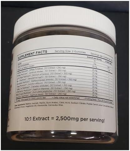 Experience the power of ULTRASHROOM Master Blend Mushroom Gummies in a delicious sugar-free strawberry flavor. This blend of great mushrooms, including Lions Mane, Turkey Tail, and Cordyceps, is designed to enhance focus and stamina. Each serving contains a potent 10:1 extract equivalent to 2,500mg, ensuring you get the maximum benefits of these premium mushroom ingredients.
